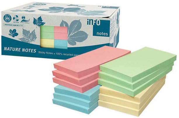 Blå engel-sertifiserte notatblokk ideelle til huskelister, meldinger eller viktige beskjeder som ikke må glemmes. Kan festes på nesten alle overflater.